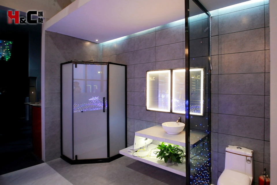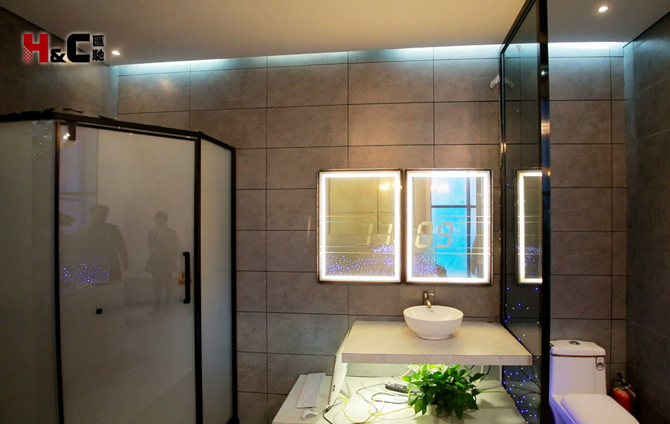 在鏡子上顯示時(shí)間、溫度,這是調(diào)光膜的一種特殊應(yīng)用。一般情況下,鏡子上交替呈現(xiàn)當(dāng)前的時(shí)間和室內(nèi)溫度。當(dāng)有人站在鏡子前面的時(shí)候,時(shí)間和溫度自動(dòng)消失,它就變成了普通的鏡子。鏡子周圍的燈光可通過(guò)手勢(shì)來(lái)打開和關(guān)閉,非常方便。