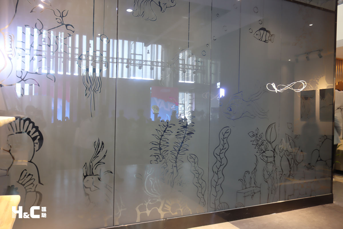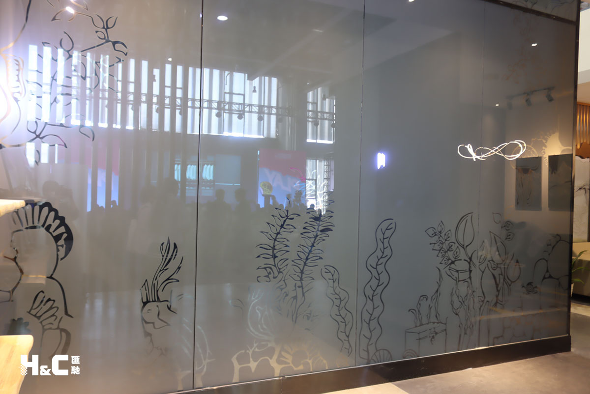 根據(jù)調(diào)光玻璃產(chǎn)品的特性和本質(zhì),我們結(jié)合了中國傳統(tǒng)剪紙藝術(shù)的手法以及鏡面反射的對比,以“孩童稚嫩般的畫風(fēng)”的表現(xiàn)形式制作這幅4.9米*4.9米的巨幅手繪畫版。