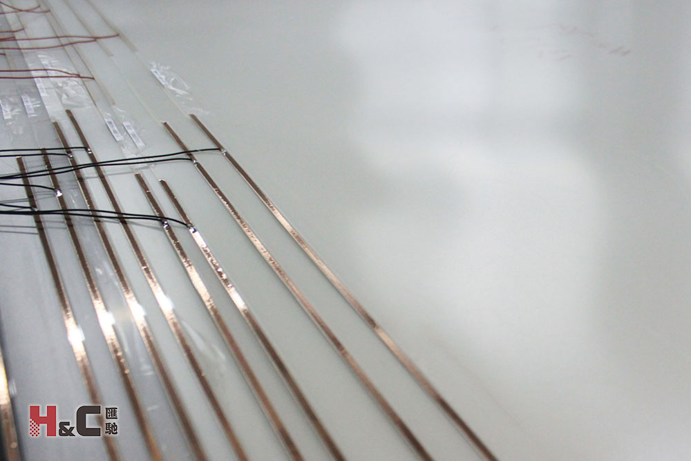 準(zhǔn)確來(lái)說(shuō),調(diào)光玻璃需要通電的不是玻璃,而是它中間的液晶膜。液晶膜與電線(xiàn)的連接部分,就叫做電極。電極主要由銅箔構(gòu)成,把它牢固地粘在液晶膜的導(dǎo)電層上,再焊上電線(xiàn),就接連起來(lái)了。