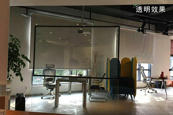 如圖:調(diào)光玻璃(調(diào)光膜)在打造室內(nèi)隱私空間的同時(shí)作為會(huì)議投影使用